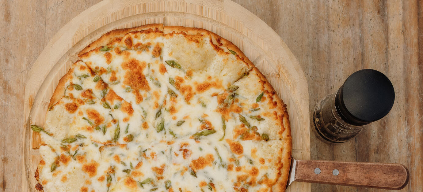 (Salsa pomodoro, romero, albahaca, perejil, ajo, aceite de oliva, parmesano, mozzarella.)